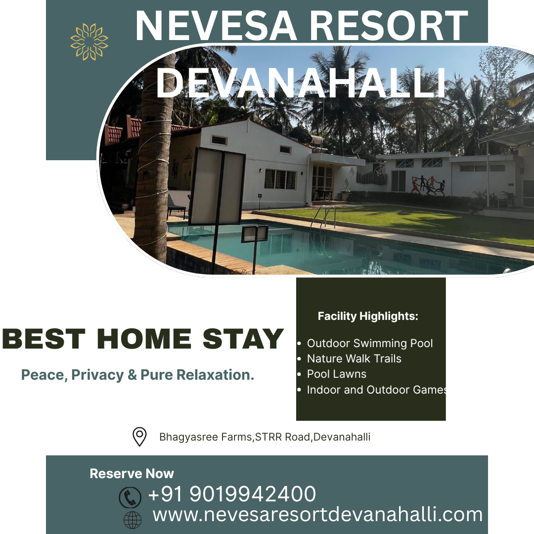 Discover your perfect private retreat at Nevesa Resort Devanahalli – where plush greenery meets luxury living. Just minutes from the city, yet worlds away from the chaos. ✨ Your own private haven 🌳 Surrounded by lush landscapes 🏡 Premium accommodations 📍 Conveniently close to Devanahalli Book Your Dream Stay Today! 📞 +91 9019942400 ✉️ enquiry@nevesaresortdevanahalli.com 🌐 www.nevesaresortdevanahalli.com #NevesaResort #LuxuryStay #WeekendGetaway #DevanahalliFarmhouse #PrivateResort #NatureRetreat #BangaloreGetaway