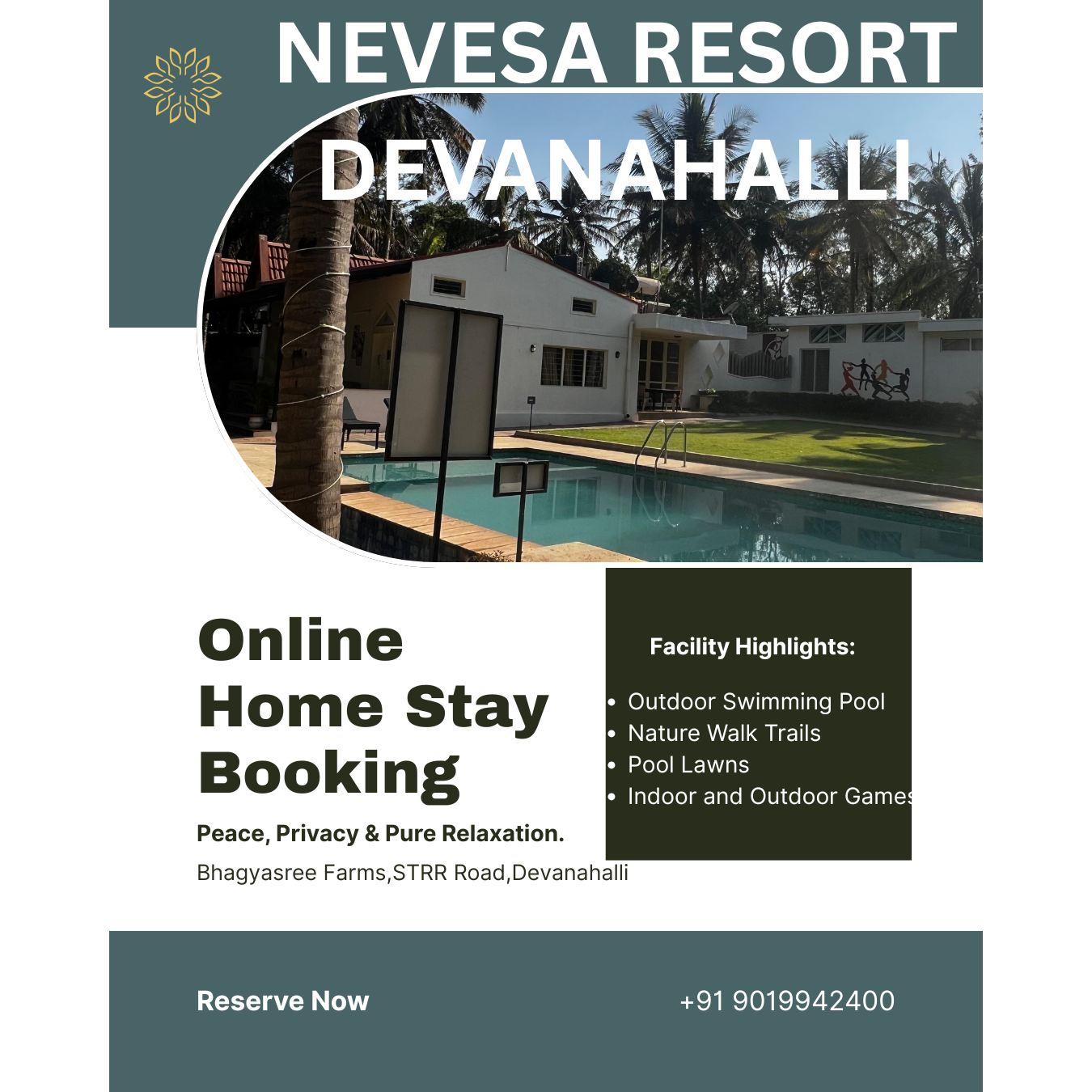 πΏβ¨ Stay where peacocks sing for you... Stay where Bulbuls play for you... Stay where trees dance to your rhythm... Choose a stay where you can walk barefoot, breathe fresh air, and stay healthy πΈπ« π‘ Book your serene getaway at Nevesa Resort, Devanahalli β where nature meets comfort. π Call: 9019942400 | π www.nevesaresortdevanahalli.com